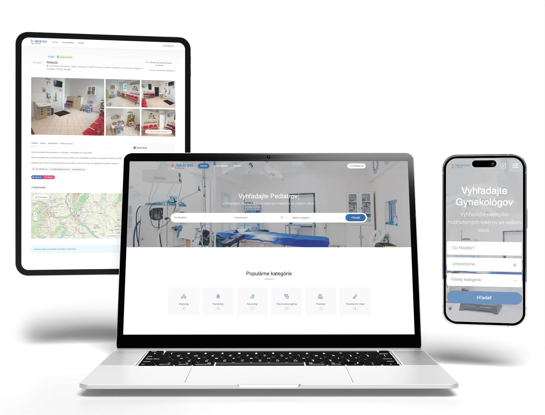 Stránku k-lekarovi.eu sme vytvorili tak, aby bola rýchla a jednoduchá. Používateľ zadá lekára či špecializáciu, vyberie lokalitu a okamžite vidí všetky možnosti. Registrácia aj rezervácia prebiehajú ľahko a zrozumiteľne. Web pôsobí dôveryhodne, je prehľadný a prináša pohodlie pacientom aj efektívny nástroj pre lekárov.